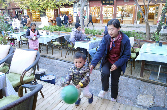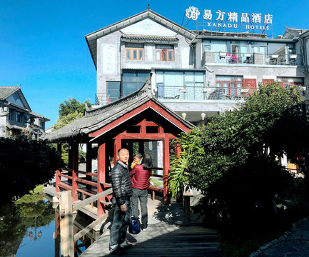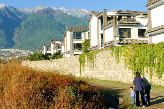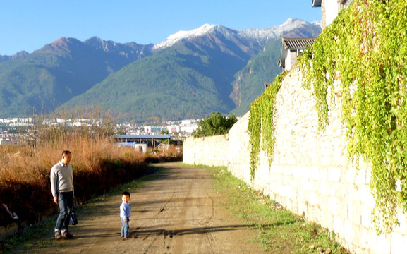 中午是全家人一起到餐厅用膳,饭后让宝宝“放风”,在酒店附近走走。酒店所在之处称“密湾旅游文化小镇”,位于从大理古城前往才村码头的必经之路上。我2006年在古城小住,曾赴才村码头乘船游洱海,路经这里所见都是农田,现今却已变成一幢幢的粉墙黛瓦白族风格楼宇,还有小桥流水,颇有一些苏州园林的风韵。