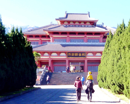 观音殿后面才是2003年以后重建的崇圣寺主体建筑,一大片的宫殿式楼宇,走一遍得花费不少时间,此刻已是13:00过后,我们还要赶回昆明,再说风也太大,担心宝宝再出状况,于是就没再继续前行,掉头结束了崇圣寺之旅。