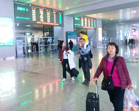 2018.12.18(D7),今离安顺赴昆明,搭乘G2111次高铁(长沙南-昆明南),11:32过路安顺西站。因为时间宽裕,9:10方吃早餐,10:25远通和悦度假酒店退房、出发,但始料未及却遇交通拥堵,11公里驱车近40分钟,赶到西站已是非常吃紧,匆匆向“一嗨租车”交还汽车、过安检、进站,走到候车大厅G2111次已经开始验票。