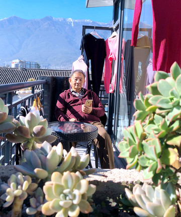 继续前行,13:45在“邓川”收费站下高速,转进国道G214(西景线)向南,驶往大理古城方向。14:32驶抵位于古城东北角城外不远处的“易方精品酒店”,宝爸在这里预定了住宿。酒店客房干净、整洁,附设观景露台,因为今日不拟外出,闲暇时刻就坐在露台上晒太阳、看看风景,附近的白族民居,远处的积雪苍山,都可以尽收眼底。酒店附设对外营业的餐厅,厨师手艺不错,我们早、中、晚都是在酒店内用膳。