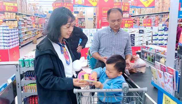 2018.12.19(D8),今日赴大理,但因有宝宝,我们的一切行动都比较迟缓,10:30方才退房、出发。先是在附近“沃尔玛”置备物资,买了成箱的矿泉水和幼儿纸尿裤,还买了些食品,主要是昆明特产“鲜花饼”,大家都说好吃。超市客服夸奖宝宝可爱,送他一只绒布小白兔,宝宝非常喜欢,随后就总是带在身边,睡觉都要小白兔陪伴。
