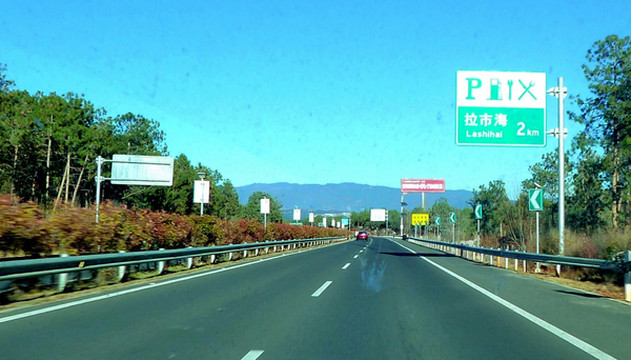 计划再次改变,时间也就再次显得宽松,整个上午都在“丽歌假日酒店”内休息,12:00方才退房、驱车赴大理。12:15在“丽江西”上G5611大丽高速,12:50在剑川县的“剑湖服务区”稍停,宝爸下车找开水,为宝宝冲泡奶粉。剑湖服务区规模颇大,停车场面积超宽,附设餐厅、超市,还有一座跨越公路的骑楼,能将公路两侧的双向服务区连为一体。“剑湖”就在服务区的侧旁,湖光山色,风景也是颇佳。