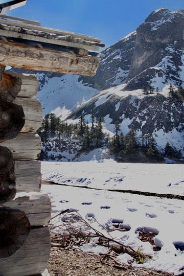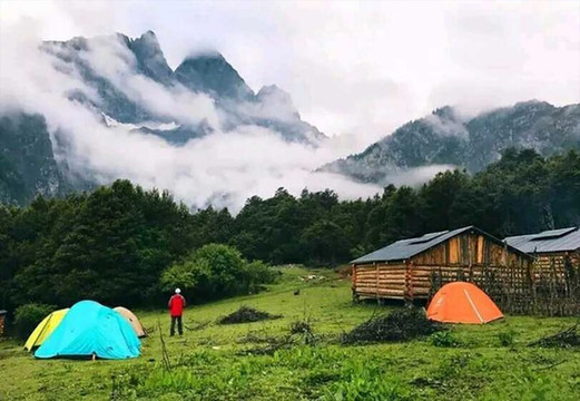 雪山下有一些木屋,房间内有柴火可以取暖,现在的特色项目是在这里烧烤。