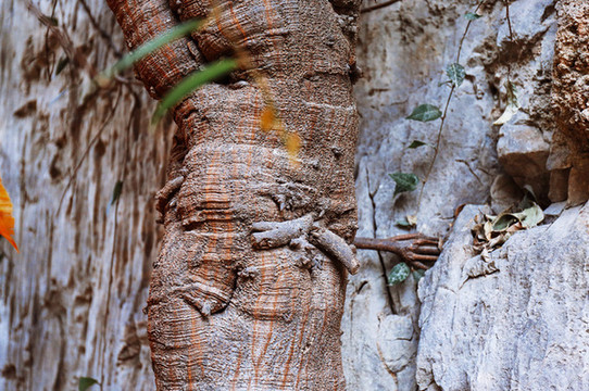 浏览先从一颗3000年的菩提树开始。这棵巨大的千年菩提树最神奇的地方在于它的树杆处竟然长出一只形似人手的根系,人们叫他“佛手”。