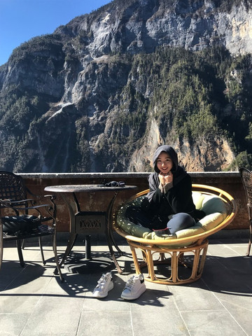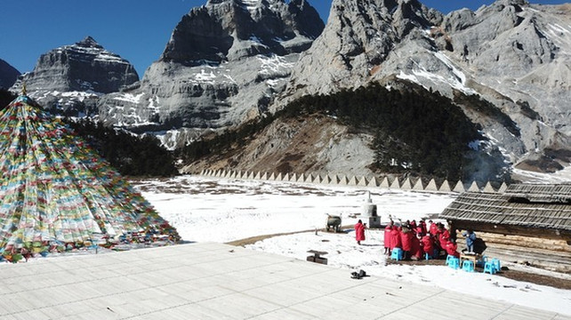 巴拉村餐厅的户外就是格宗神山,依山就势,视野非常好,在室外坐着晒太阳是一种享受。