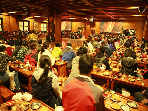 是酒店也是餐馆,可以吃到地道的香格里拉地道美食。相比于藏式生态大酒店,更靠近峡谷里,适合情侣来这里,比较私密