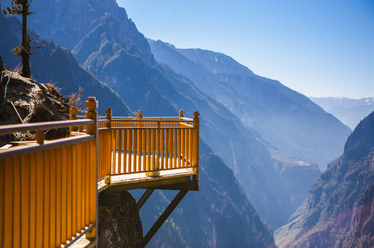走在垂直落差700米的玻璃栈道上,看着云雾从脚下漂过,有些人可能会害怕,但面对美景却又忍不住再继续向前,移步换景,转身换景,仰望苍穹雪山是景,俯看绿水碧波是景。