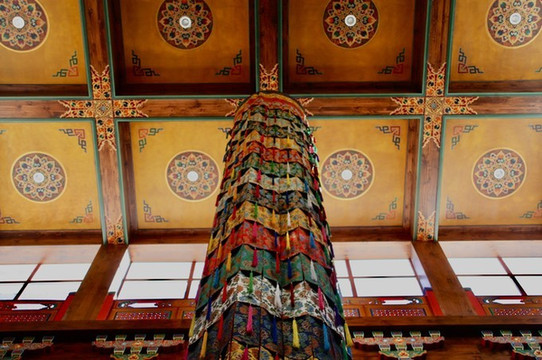 二楼就是二十一尊度母。佛教讲究因果与佛缘,二十一度母每一尊法相都不完全相同,每一尊度母都有着不同的加持。所以,在游览朝拜的过程中,既可以二十一尊度母一一朝拜,也可以随缘而入,选择与自己佛缘深厚的度母虔诚朝拜并念诵度母心咒:嗡达咧 度达咧 度咧唆哈!
