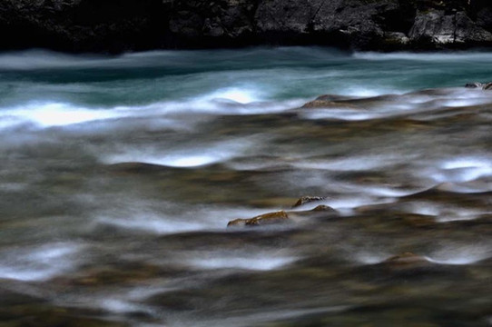 河水玻璃般的通透,清凉灵动像翡翠。