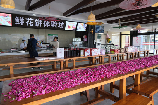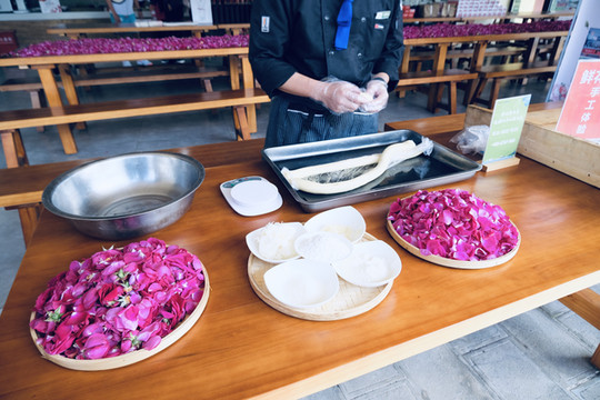 进来景区后,在美食街可以体验鲜花饼的制作,自己动手做一盒鲜花饼,现场就可以吃到。