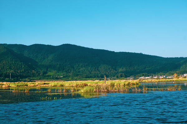 尤其到了秋末冬初,滩岸边茂盛的芦苇草木金黄,与蓝色的湖水相衬托,时常可见白鹭和翠鸟停驻,清新诗意,让人心生纯净。