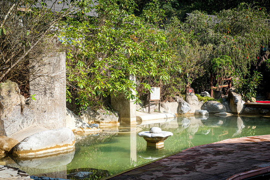 腾冲热海温泉度假酒店•玉温泉别墅里面有温泉池子,可以享受自己的私汤时刻,没有嘈杂的人声,只有安静的虫鸣,闭目用心去感受。