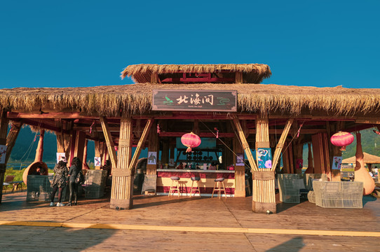 这家餐厅位于云南省保山市腾冲腾越镇娘娘庙附近,是一家腾冲当地非常有名的特色餐厅。餐厅的主体建筑为两层竹楼,四周为浅浅的水塘环绕。