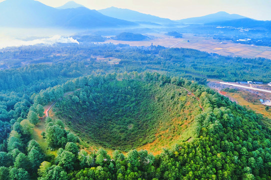 这就是从热气球上面俯瞰下去的小空山,小空山是火山群中最好看的一座山。