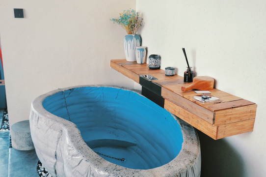 浴缸和一般酒店的不同,流出来的是温泉水。