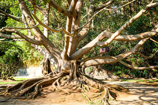 司莫拉秘境,说这里古树参天一点都不为过。在秘境区里有一片榕树群,漫步在榕树群中,可以体会到佤族人民对自然敬畏与崇拜。榕树上挂满了牛头图腾,有一种神秘而古老的气息。