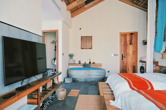 房间空间很大,是个开放式的大开间,床品非常的舒服,躺下去可以安心的睡个好觉。