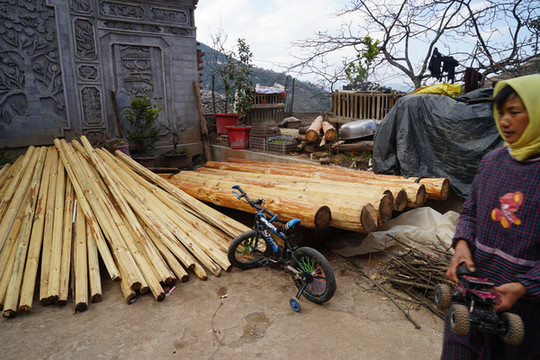 似乎家家户户都在大兴土木。狭窄的山道上遇见的都是装载砖瓦水泥的拖拉机。木料是山上自家林地砍的。建筑成本一个平方毛坯,价约1200元。