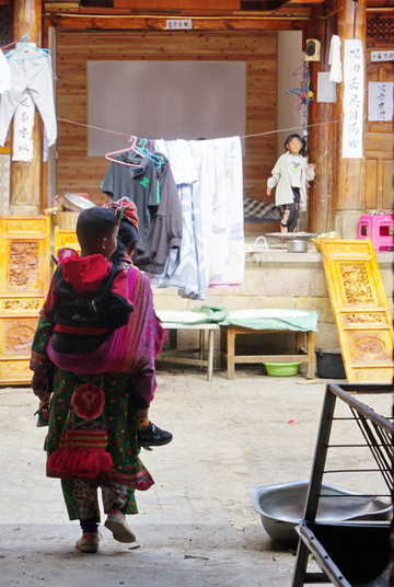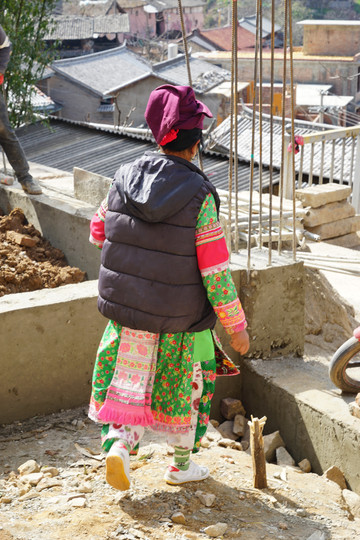 着民族服装的多是中老年妇女。见过几位姑娘,相当漂亮,但平时都不穿彝装了。