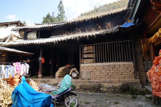 从山脚小镇到寨子里14公里路,差不多开了一个小时,终于到达这座位于山巅的彝族寨子——琢木郎。