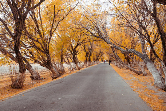 漫步在“黄金隧道”,从喧嚣的城市来到这里,仿佛进入了童话中的仙境,看着日光照耀下的金黄树叶,循着风的方向,空气里每一寸都弥漫着秋天的气息。