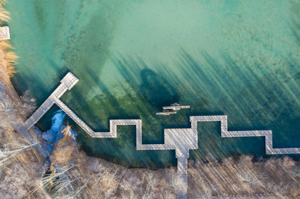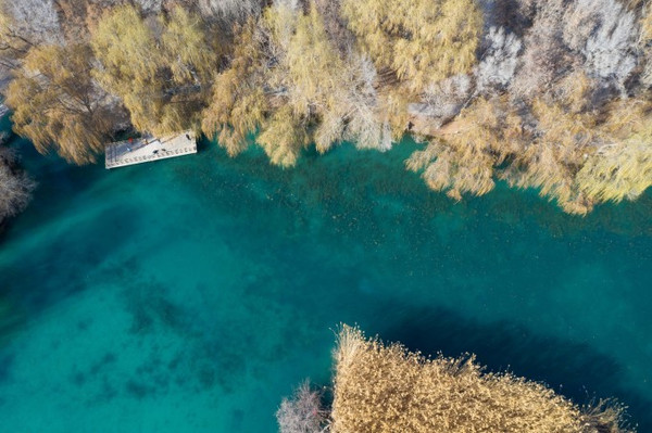 天然的九眼泉一字排开,喷涌如注,可以到听到泉水叮咚响。现在的温度还是有点低,不过等到四月份开始,这里就变成鸟语花香的仙境,令人陶醉,流连忘返。