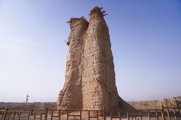克孜尔尕哈烽燧位于库车县依西哈拉乡境内,坐落于却勒塔格山南麓盐水沟沟口的冲击台地上。克孜尔尕哈在古突厥语中是红色哨卡的意思。烽燧雄伟挺拔,建于汉代。烽燧即烽火,是古代军情报警的一种措施。它是古丝绸之路北道上时代最早,保存最完好的烽燧遗址,且位居丝绸之路北道的黄金地段。