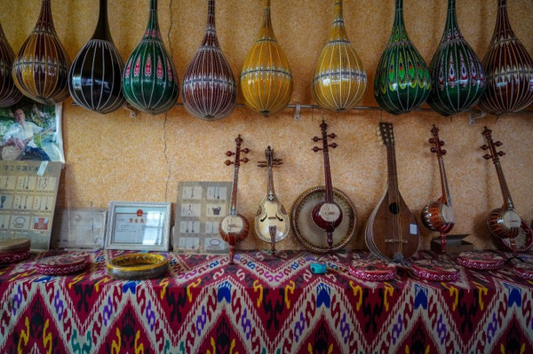 新和县天籁加依村,被誉为“新疆民族乐器手工制作第一村”,该村村民多以手工乐器制作为生,产品远销海内外,依托龟兹乐舞文化资源,打造了一个集乐器制作、乐舞展示、民俗体验、摄影影视为一体的特色民俗文化旅游景区。