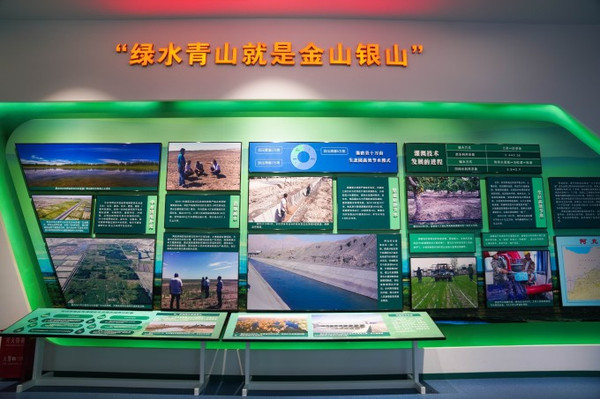走进纪念馆,一边聆听着柯柯牙地区从昔日“漫卷狂风蚀春色,迷蒙黄沙掩碧空”的荒原大漠到今天“风拂杨柳千顷绿,水润桃杏万园红”的苍茫林海的变化,一边凝视着一幅幅弥足珍贵的照片、一篇篇生动详实的文字叙述,完全被眼前的情景震撼,感慨于柯柯牙的“绿色长城”。