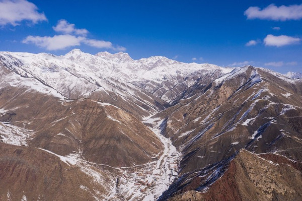 入春未化的皑皑白雪,披在了一望无垠的山体之上,更壮阔雄俊的大峡谷增添了许多的诗意。