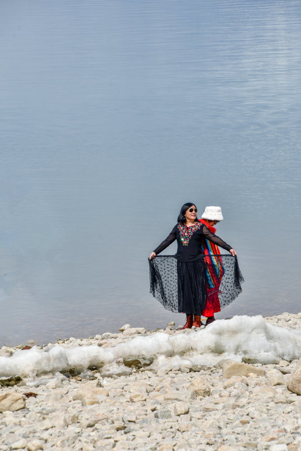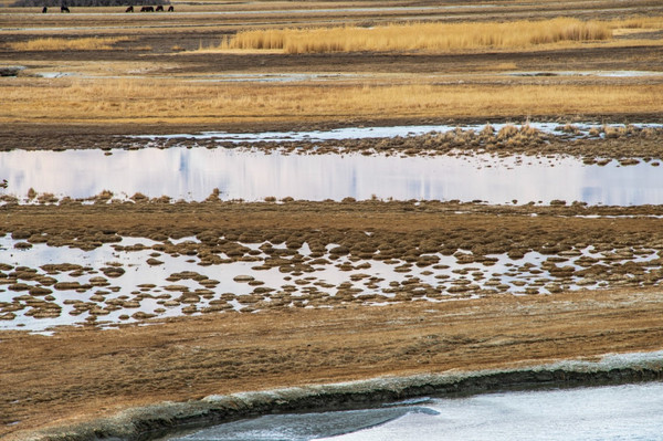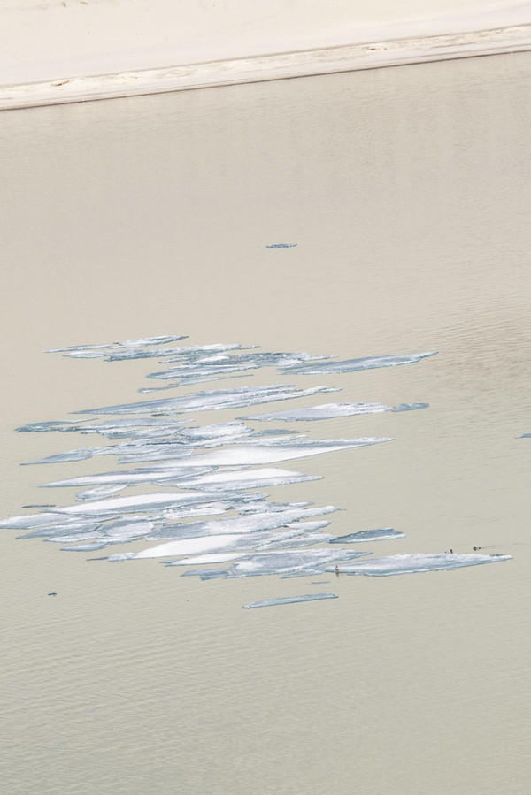 前面的湖面还有一片冰层