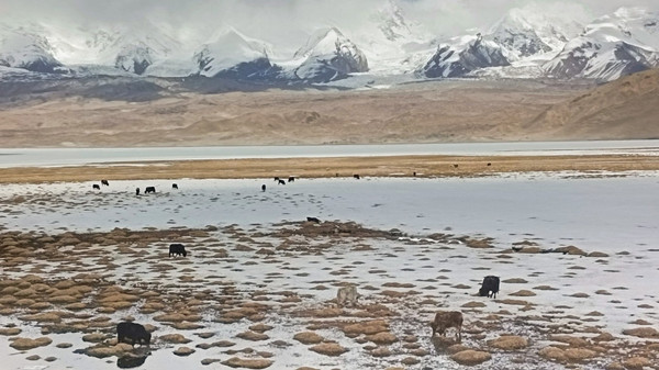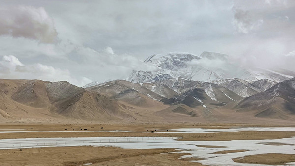 雪山、冰川是帕米尔高原上最迷人的景象,几百座风姿各异、大大小小、高低起伏、连绵不断。环视四周,仿佛置身于雪山的怀抱之中。