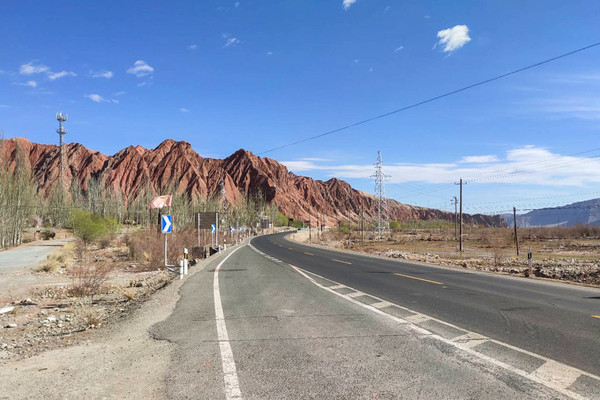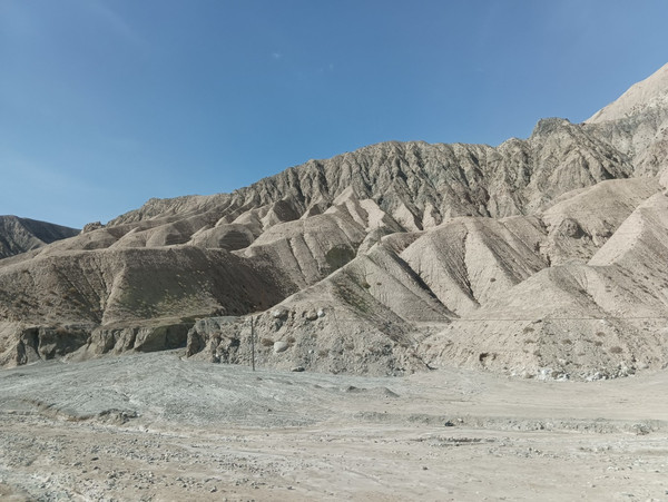 10:00离开,继续往库科西鲁克乡,一路景色山体纹路清晰一路蓝湖