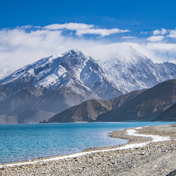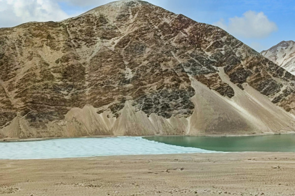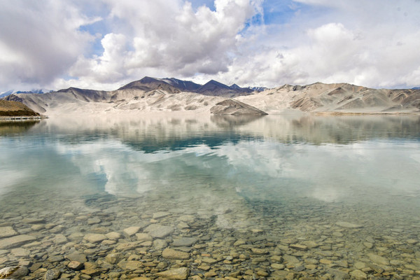 雪山融雪形成了布伦库勒湖,湖中的 白沙 在枯水期裸露出水面,千万年来被风吹起而堆积成大大小小十余座 白沙 山,高度多在100米以上,蜿蜒十几公里。