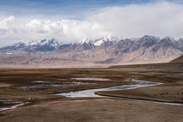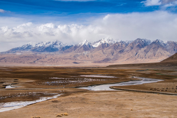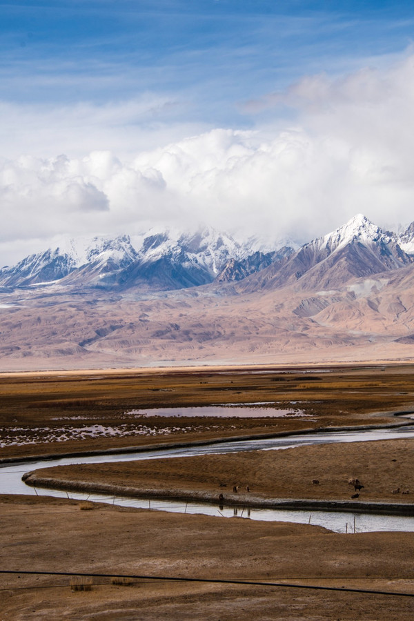 草原一马平川 河流从雪山脚下蜿蜒,印象中的帕米尔高原是雪山戈壁,但你可以永远相信塔合曼湿地这里不仅能看到巴音布鲁克草原般九曲十八弯,更能欣赏到海拔6000米的终年雪山群是帕米尔高原少有得草原湿地,也是中国最西边的世外桃源