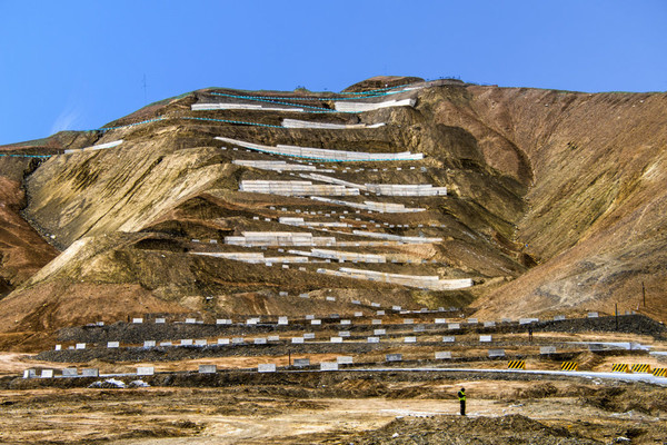阅尽帕米尔高原壮美景色,极度愉悦、恋恋不舍中上车,沿之字形的车辙下山,下到山底后反过来回望小盘龙,天梯一般。