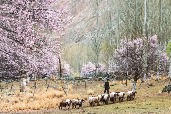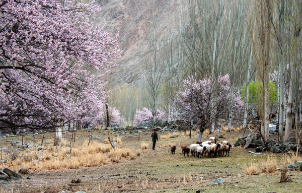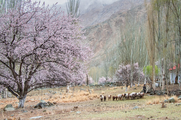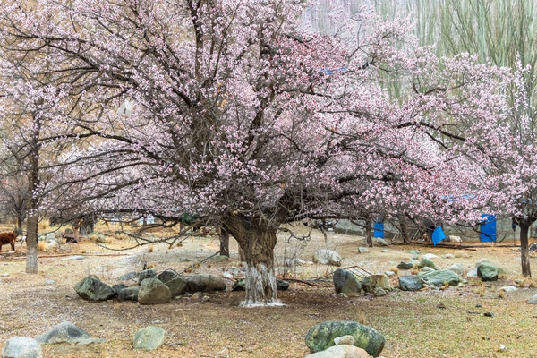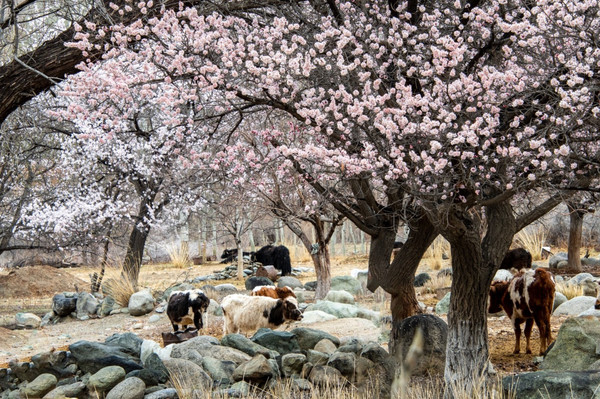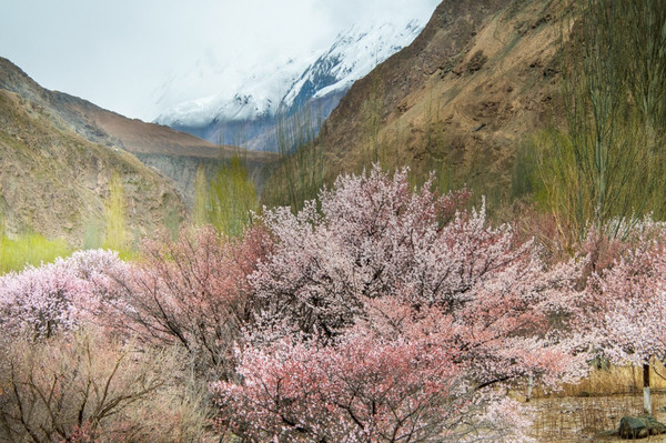 雪山下,古老的杏树花开满整个山谷,世外村落美成了仙境,偏僻宁静,朴实自然,没有一点点娇饰、哗众取宠的姿态,时间在这里不留痕迹地走过。