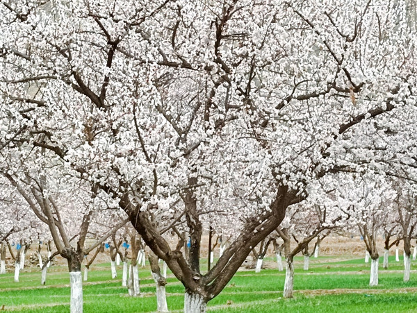 杏花村美誉的隐世村落,库科西鲁克乡看“山下杏花山上雪,羊欢马叫果满园”。