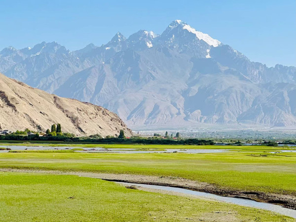 支线任务奖励1:沿途居然经过了一片大草原,下车拍照,原来这里是塔河曼湿地公园,是一个还在开发中的景点!据说这是塔县最大的湿地,这片湿地坐落在慕士塔格峰脚下、喀拉库里湖畔,绿草茵茵、风景秀丽。赶紧下车打了个卡,