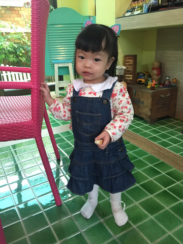 宝宝今天满22个月,就快两岁了,语言能力提高不少,大人说什么就学着说什么,但最近喜欢粘着麻麻,不要爸爸抱,带她出来好累。