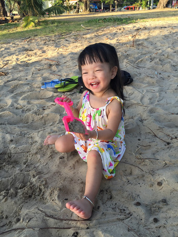 下午睡醒后,我们就去海滩玩沙,游泳。