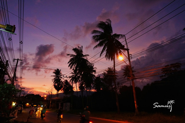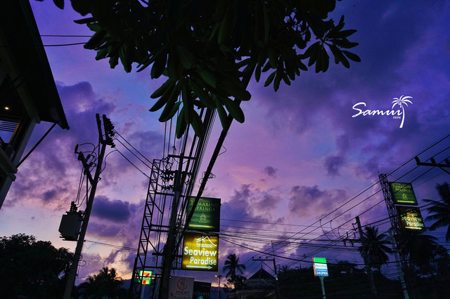云层越来越厚,只剩下些许的云朵被染上了斑斓之色,今天的日落看来是真的等不到了,我在苏梅的最后一个日落啊~