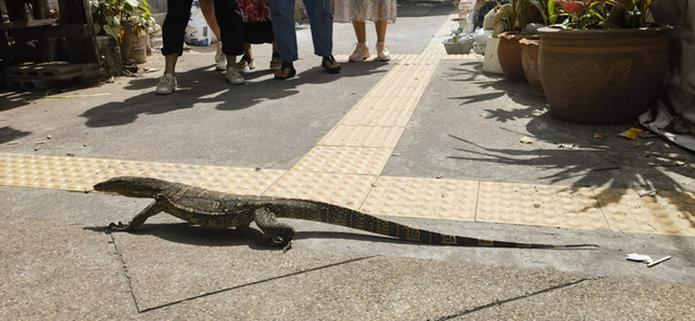 开启了用船代替轨道交通的一天,早上步行到码头,泰国的生态太好了,路上有一只巨大的蜥蜴漫步,挡住我们的去路。汗。在码头问工作人员到郑王庙(Wat Arun Ferry 码头)是多少钱,回答坐橘色线,16泰铢/人吐血,(立马感觉对了,昨天果然被烧)。