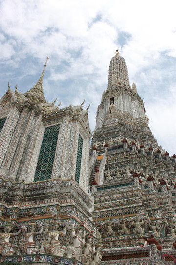 郑王庙是泰国王家寺庙,为纪念带领泰国人民争取独立的民族英雄,地41代泰王郑信而建的庙宇,最有魅力的建筑是那近80米的巴壤塔,方形塔身镶着各色瓷器的碎片组成的不同花纹,阳光下发出绚丽光彩。人太多,照相的角度被封的死死的,本来想租赁泰式服装打卡。在太阳公公的热情照顾下,毅然决然的放弃,在大殿里坐了几分钟,扯呼!