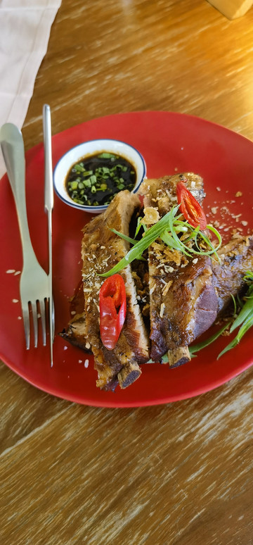 PRACA餐厅菜品整体价格不算贵,我们4个人3200泰铢,菜品的口感和味道超出我的期望,特别是两个菜,吐血推荐,如果在华欣一定要去尝一下,咖喱软壳蟹和排骨,不好吃你打我。