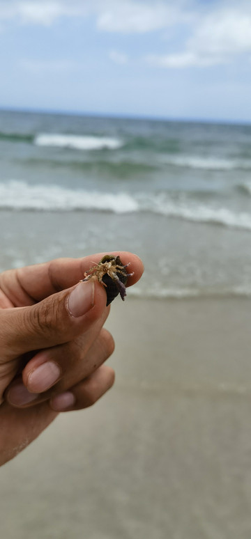 酒店就在海边,可以看到海边牵着马让人照相的人,海滩很平,落差不大,向海里走很远水都浅,沙滩细软,非常多的螃蟹和寄居蟹、海钱等,带孩子戏水赶海非常棒。