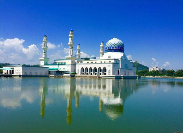 白色建筑倒映在湖水中,与蔚蓝天色相衬,让人为之震撼。清真寺在亚庇市区北部,距离市中心约15分钟-20分钟车程。这是典型的伊斯兰教建筑,也是亚庇众多清真寺中最为出名的一个。不过需要注意的是,进入清真寺男女都要穿长衣长裤,内部参观需要花5马币租借回教服装,进去前千万不要忘记脱鞋子。