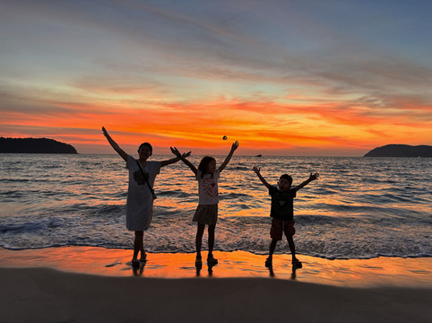 第二天下午到达兰卡威,兰卡威机场很小,打车不是很方便,赢在酒店好、风景美,珍南海滩的日落瞬间扫除了众人的旅途疲惫。