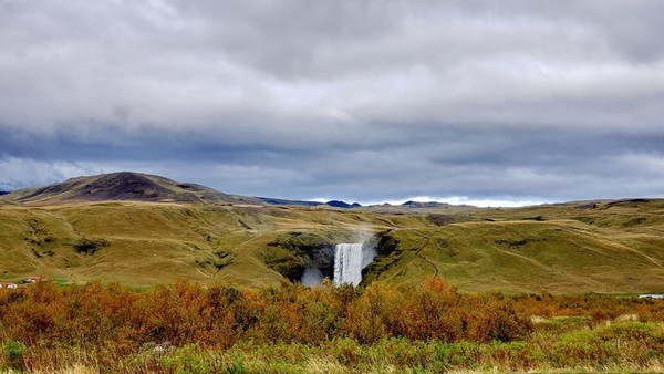 7, 斯科加瀑布(Skógafoss)斯科加瀑布(Skógafoss)在冰岛南部,高60米,是冰岛最大的瀑布之一。