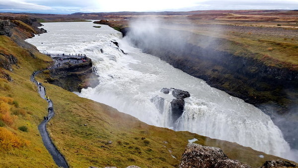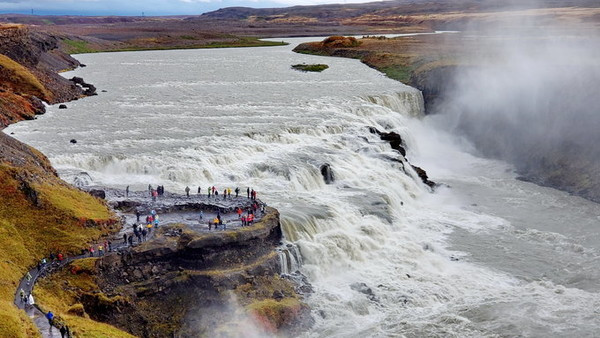 黄金瀑布(Gullfoss)是冰岛最壮观的瀑布之一,总高度32米,最长下降21米,是冰岛最受欢迎的旅游景点之一,属于雷克雅未克周边黄金三角 线的一部分。